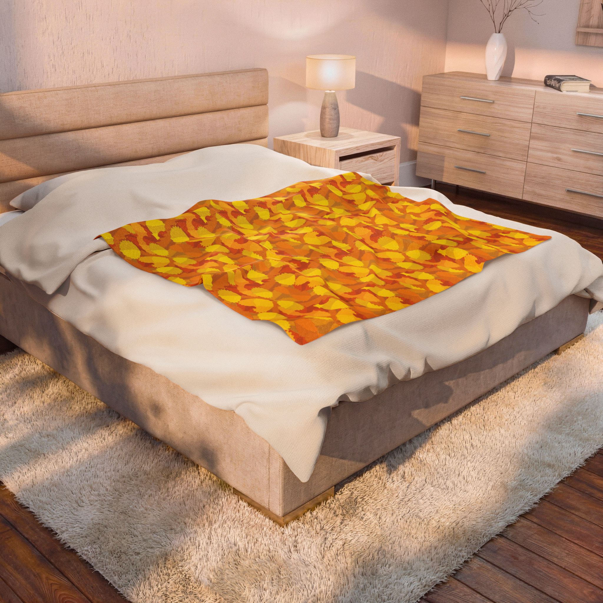 This velveteen plush blanket wraps you in a warm wash of sunset tones. The golden-orange pattern feels lively and comforting — like late-afternoon light pooling across a favorite chair. Lightweight but substantial, the fabric drapes smoothly over shoulders or across a couch, adding color and quiet warmth to slow mornings, reading nooks, and movie nights. For anyone who collects cozy corners, this blanket becomes part of the ritual: throw it over your knees, tuck it around your shoulders, and let the soft pile and rich print anchor a calm, homey moment.
